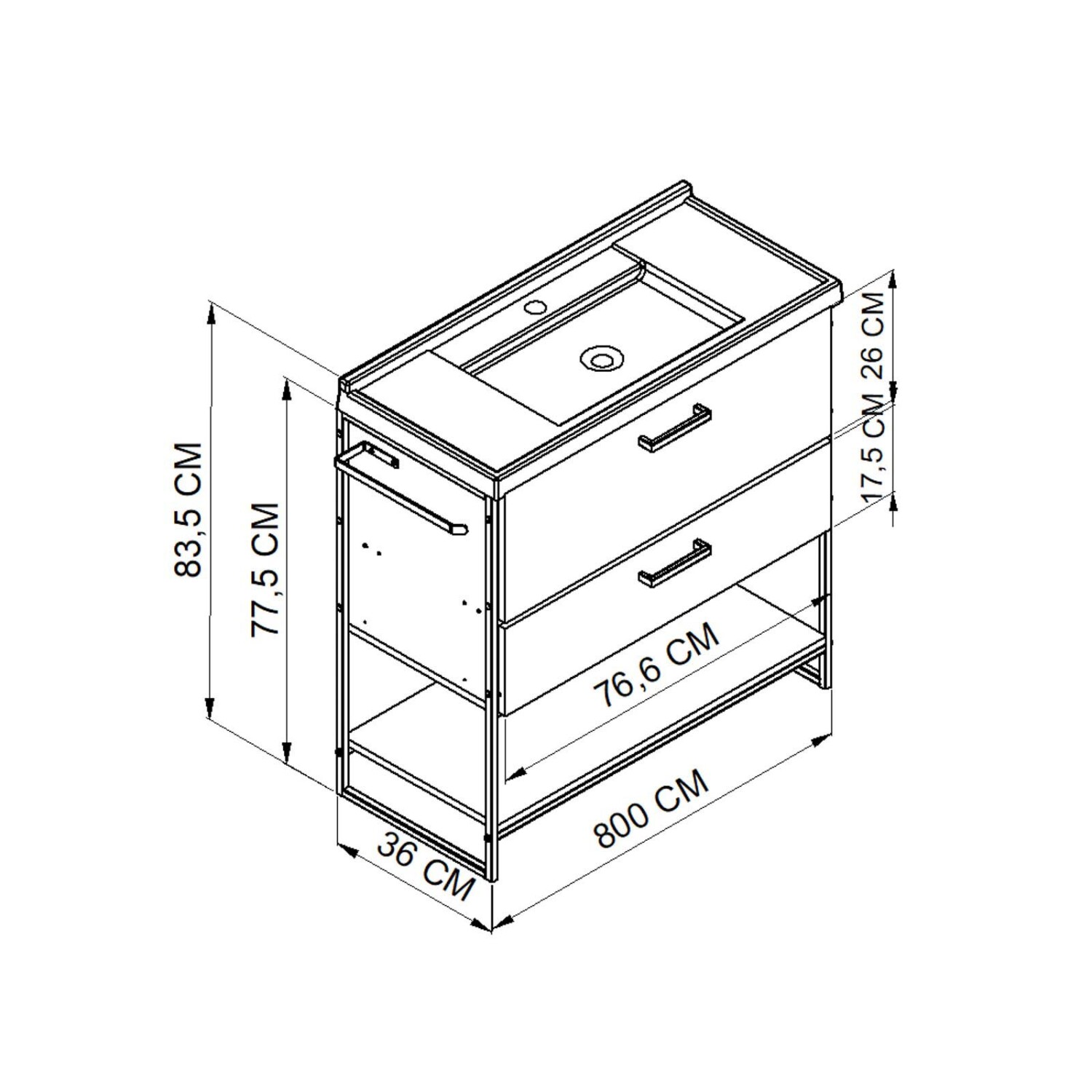 Largo muebles-bano: 80CM