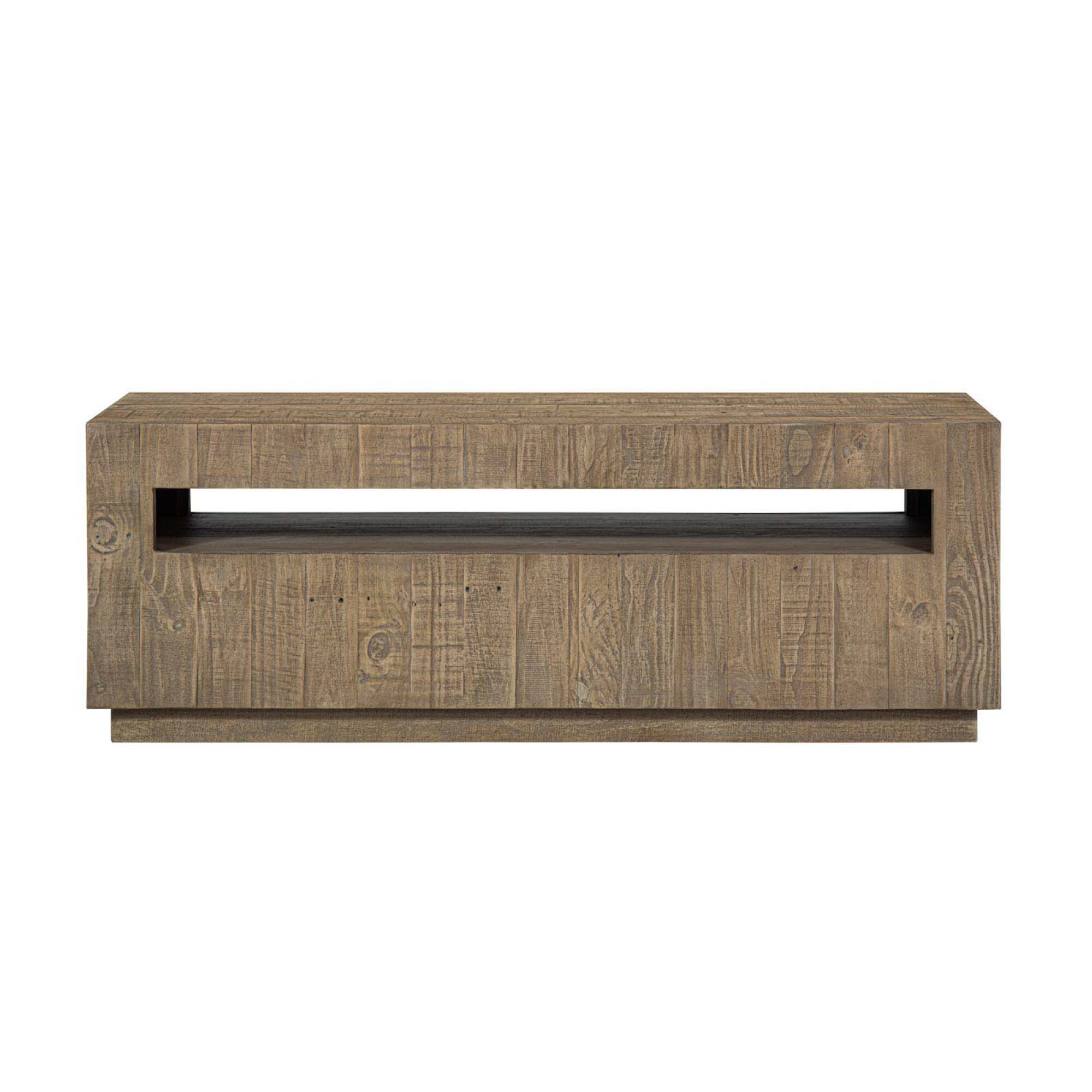 Mueble para tv Madera Natural/beige Terranova, en color natural, aporta una presencia cálida y equilibrada que se integra con facilidad al living, acompaña la zona de descanso y mantiene una línea visual continua junto al resto del mueble para living. Elaborado en madera de pino reciclada con acabado en lámina de madera, ofrece una estructura sólida con base estable, espacios amplios para equipos y accesorios, y superficie superior apta para pantallas de gran tamaño, con herrajes resistentes que aseguran un uso diario confiable; no requiere armado.