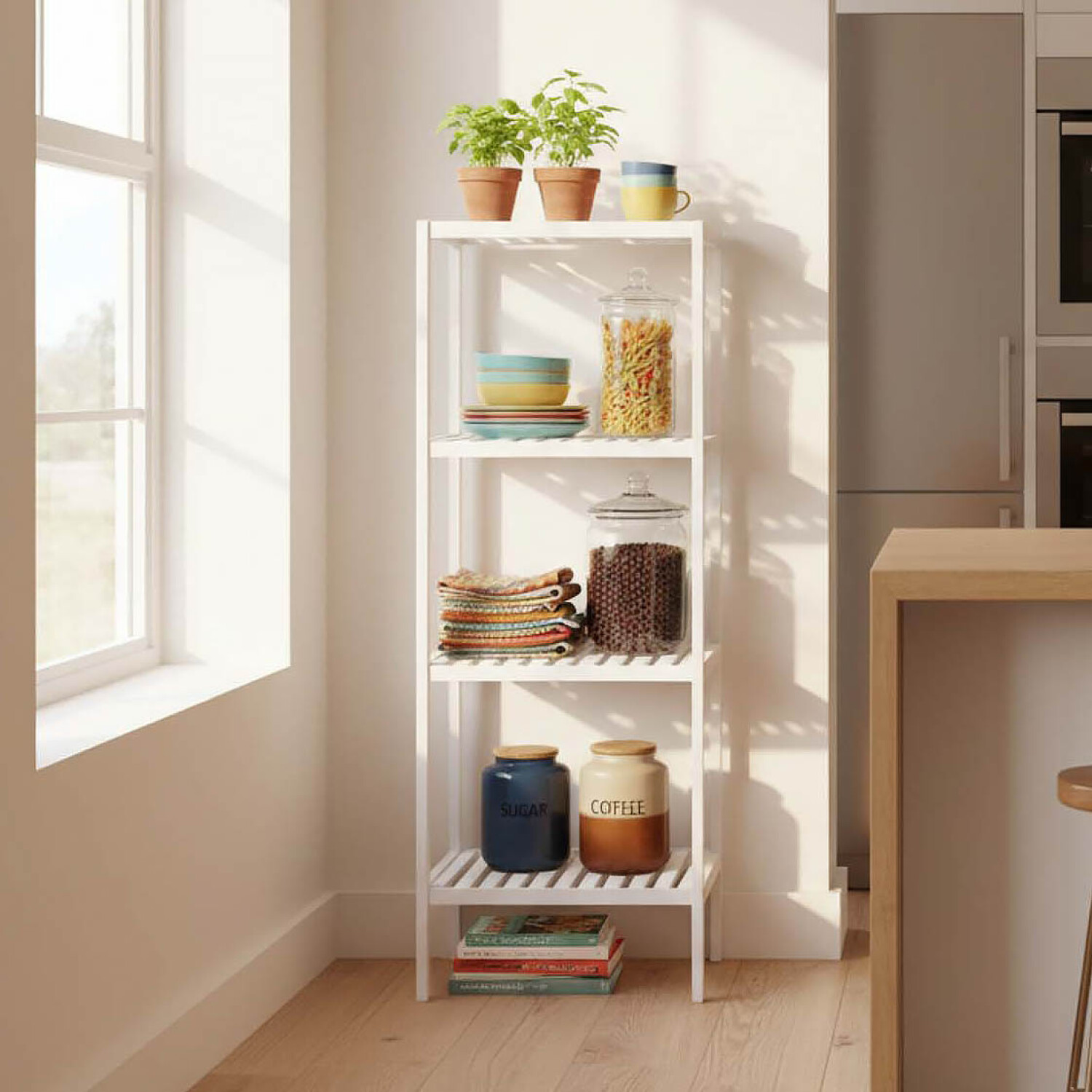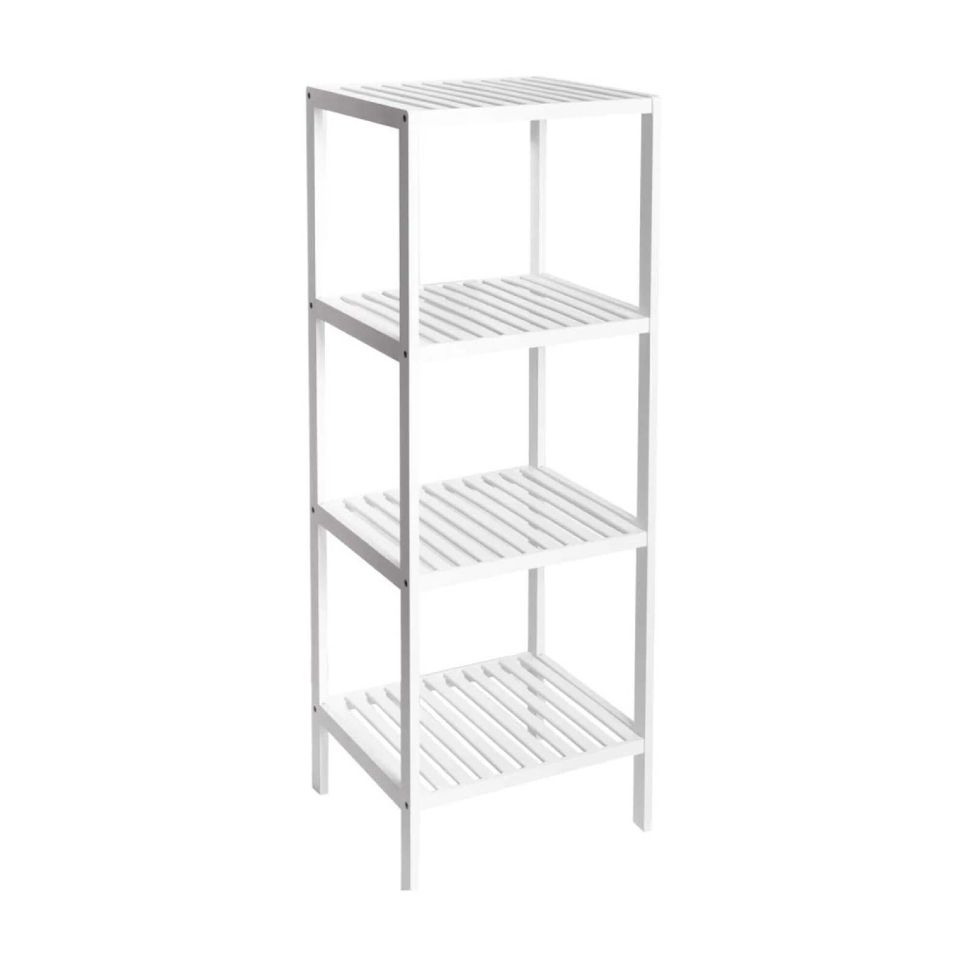 Mueble multiuso de baño/lavandería o cocina en madera de bambú con estantes.