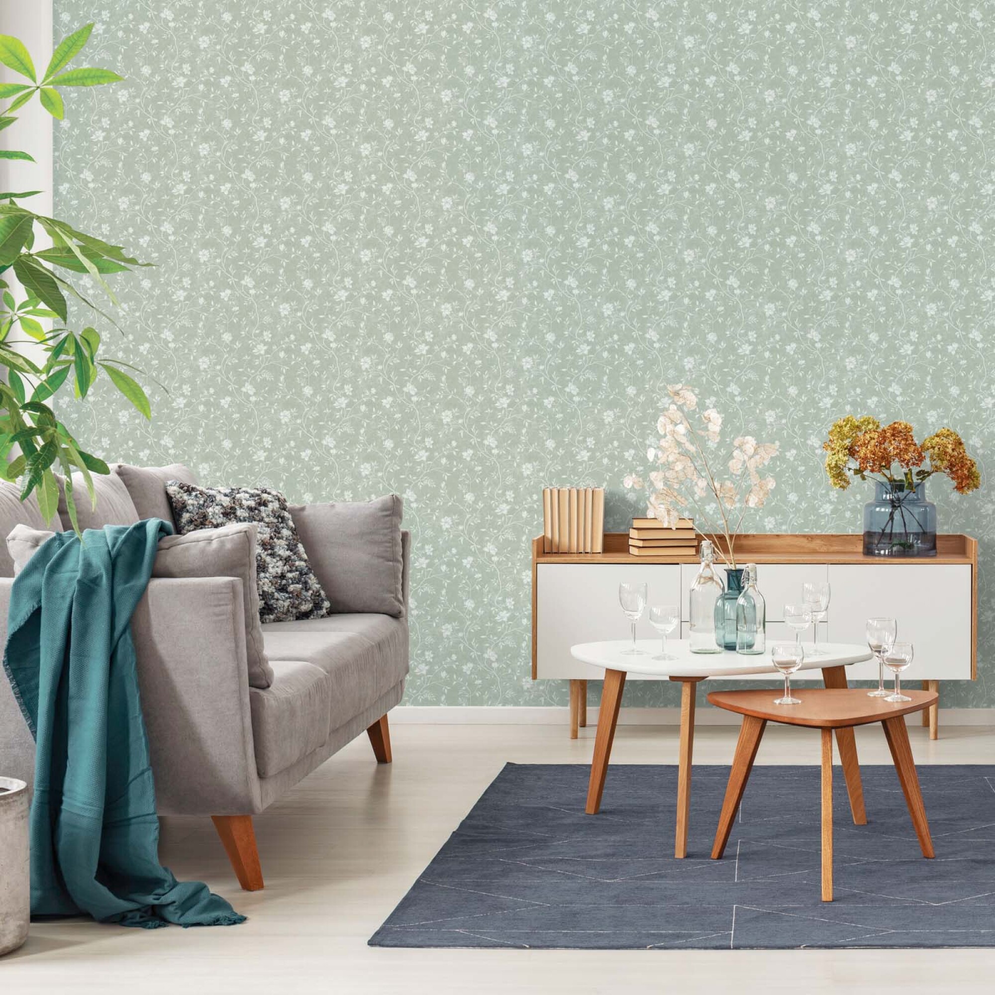 PAPEL PINTADO MAGNOLIA - PAPEL VERDE 10*0,53MTS
