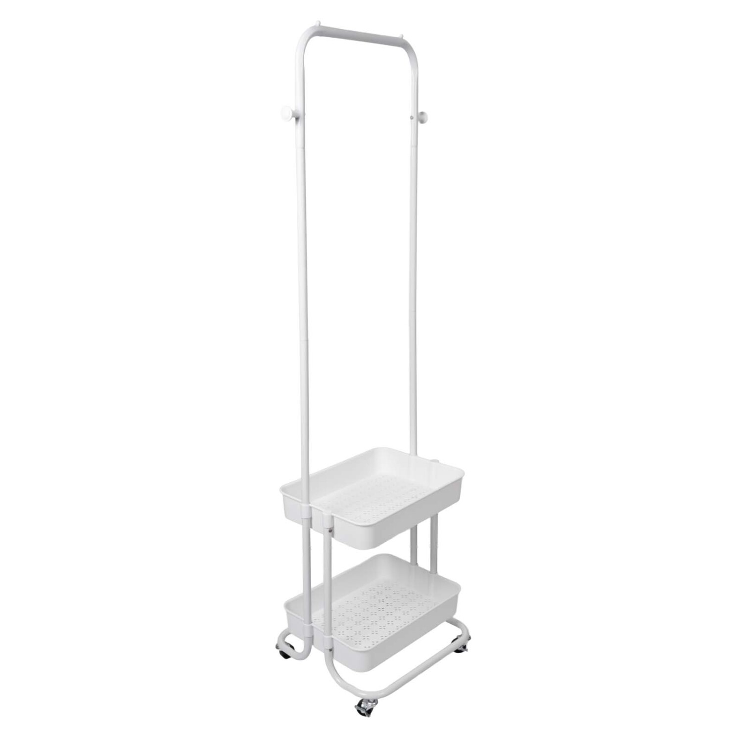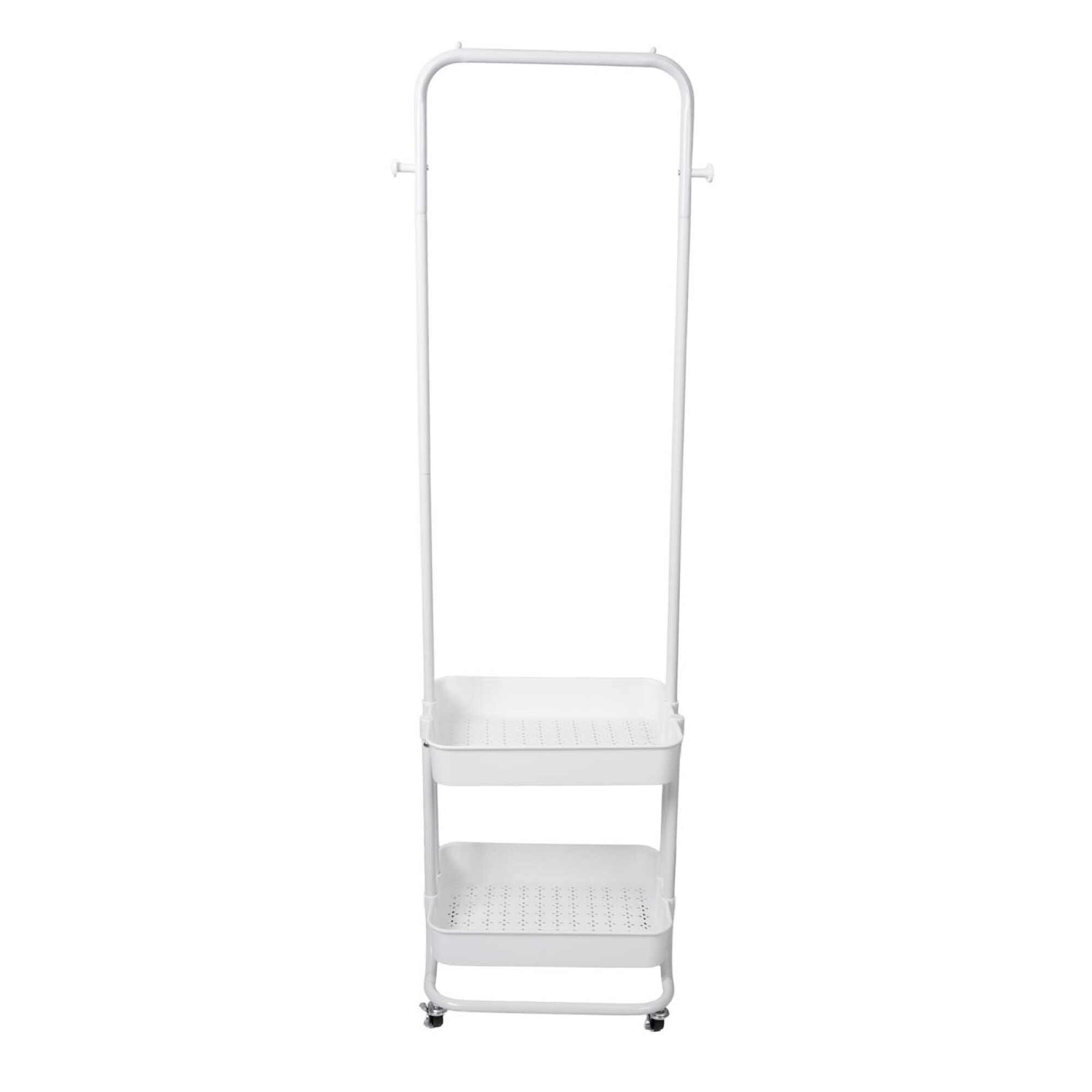 "Perchero Organizador de Polipropileno y Acero – 37 × 51 × 150 cm Perchero funcional y moderno, elaborado en acero y polipropileno para garantizar resistencia y ligereza. Incluye barra para colgar prendas y dos bandejas inferiores ideales para accesorios, calzado o almacenamiento extra. Su diseño con ruedas facilita moverlo por cualquier ambiente. Disponible en blanco o negro, es una solución práctica y elegante para dormitorios, vestidores o entradas."