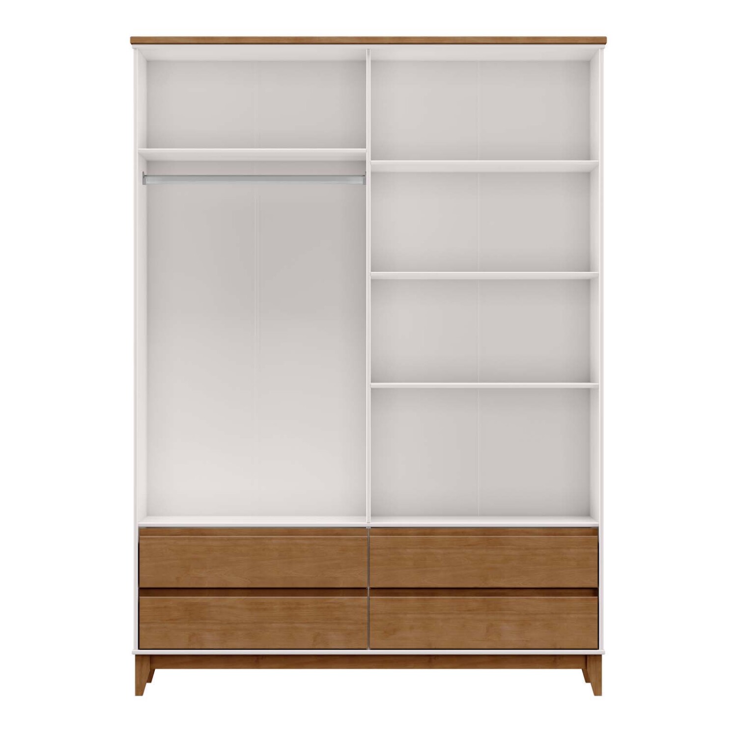 El Placard 4 puertas MDF y madera Adaku es una solución sofisticada para quienes buscan placares funcionales y con estilo. Con largo de 160 cm, alto de 220 cm y ancho de 51,5 cm, aprovecha al máximo el espacio del dormitorio, combinando MDF de 15 mm y madera de pino para brindar solidez y estabilidad. Sus 4 puertas batientes, espejo frontal y 4 cajones con rieles telescópicos permiten organizar ropa y accesorios de forma cómoda y práctica, mientras el color Offwhite/castaño aporta un toque moderno y cálido. Este placard se integra fácilmente con la cómoda y la mesa de luz de la misma línea, creando un ambiente armonioso que invita a elegirlo.