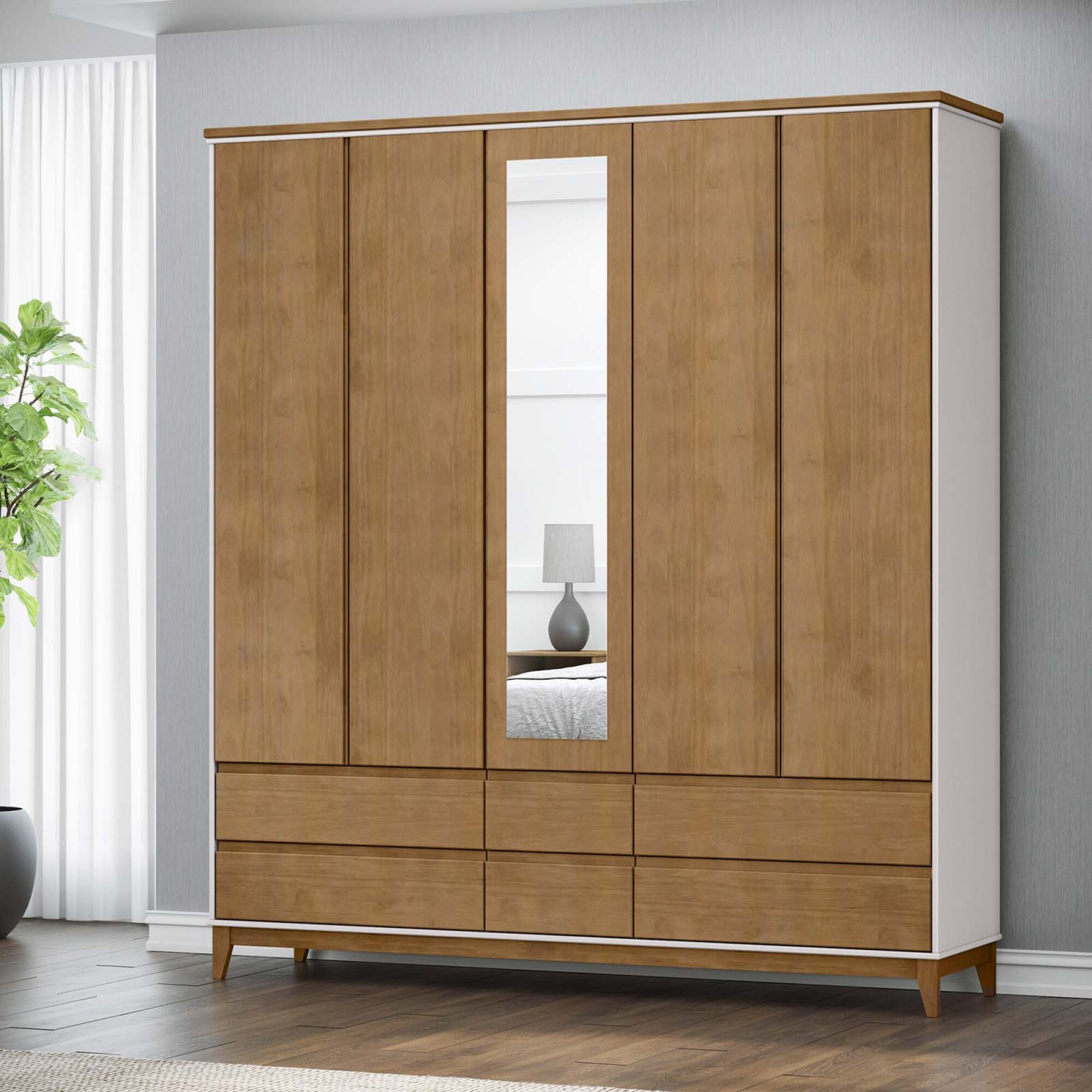 El placard ADAKU de puertas batientes fabricado en Madera de Pino y MDF de 15mm es una excelente elección para mejorar la organización y el aspecto de tu dormitorio. Su diseño simple y líneas rectas le brindan un estilo elegante y moderno. La combinación de colores Off White y Castaño agrega calidez y sofisticación al ambiente. Incluye espejo y 4 cajones, con rieles telescópico, ofrecen un amplio espacio de almacenamiento para guardar tus pertenencias de manera organizada. Vea tambien la opción de Comoda y Mesa de Luz.