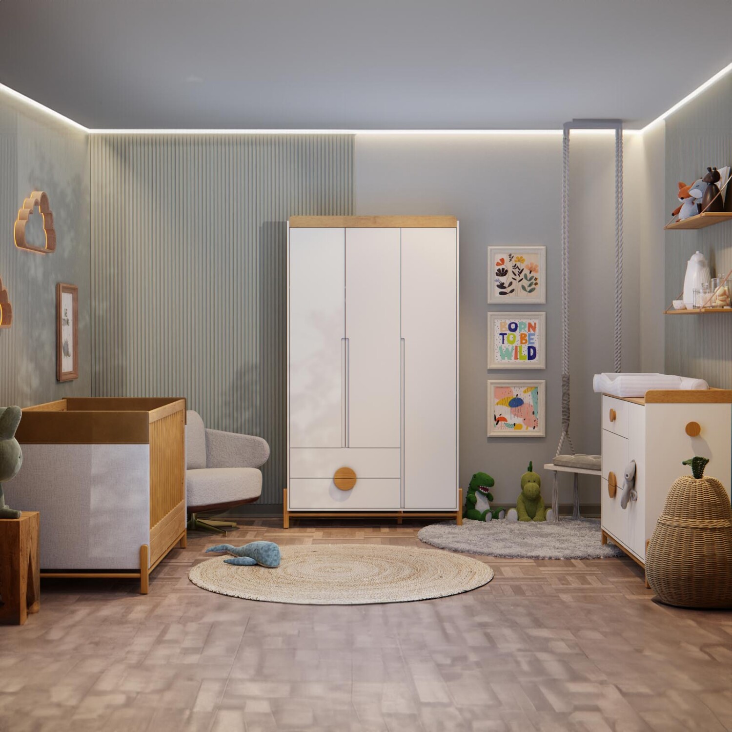Placard diseñado para la habitación de los más pequeños. Fabricado principalmente en 100% MDF, pies en madera de pino y barral en aluminio. Excelente distribución interna, cuenta con 2 cajones visibles al exterior con correderas telescópicas y tiradores circulares en madera. Encontrá en nuestra web y sucursales toda la línea TESS disponible para complementar el placard.