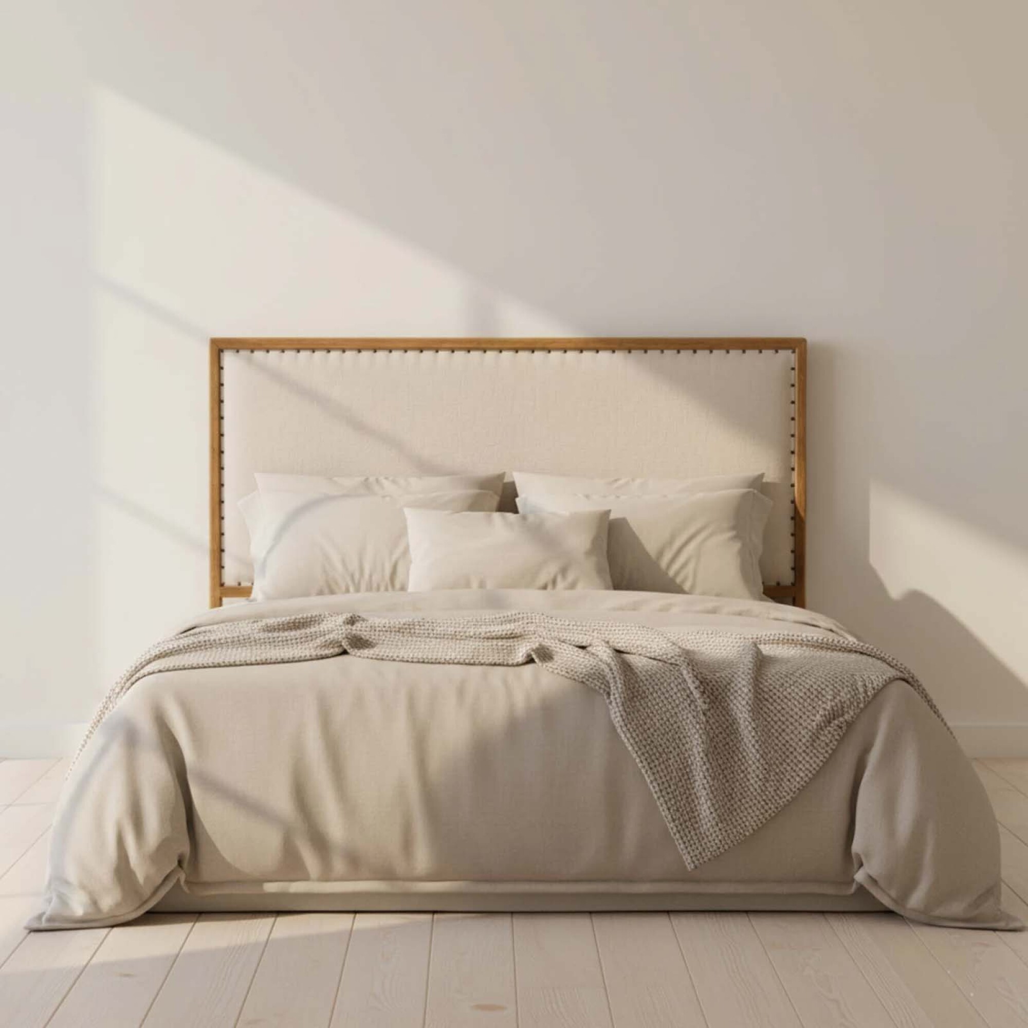 El respaldo 2 plazas de madera y tela petra natural beige combina medidas funcionales y diseño elegante para realzar el dormitorio. Con largo de 140 cm y alto de 125 cm, su estructura se amura a la pared y ofrece un apoyo firme y cómodo. Presenta un borde en madera maciza de eucalipto laqueado en color natural y un panel interno de MDF de 15 mm con espuma D26, tapizado en tela beige que aporta calidez y estilo. Su formato de tamaño 2 plazas integra respaldo, cabecera y respaldos en una sola pieza que equilibra estética, confort y practicidad, convirtiéndolo en una elección ideal para renovar el espacio con personalidad y buen gusto.