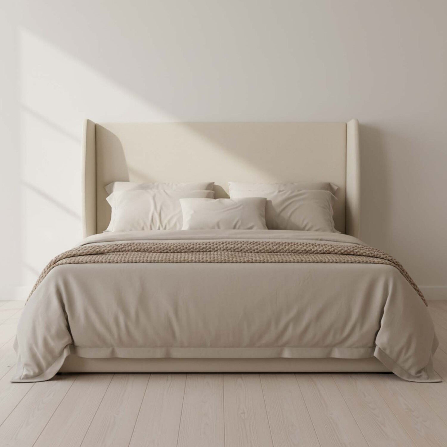 E Respaldo easy clean King Tela Natural/beige Lucia Beige, de estilo tradicional, diseñado para aportar presencia y comodidad al dormitorio. Con medidas de 189 cm de largo y 130 cm de alto, en color beige y tamaño King, combina una estructura firme de madera de eucalipto y MDF con relleno de espuma D23 que brinda apoyo confortable. Su tapizado en tela 100% poliéster easy clean aporta practicidad en el uso diario, mientras que las patas en ABS aseguran estabilidad y un acabado sobrio. Este respaldo, cabecera y respaldos integrados ofrecen una solución elegante y funcional para renovar tu espacio; elige este modelo y transforma tu habitación con estilo y confort.