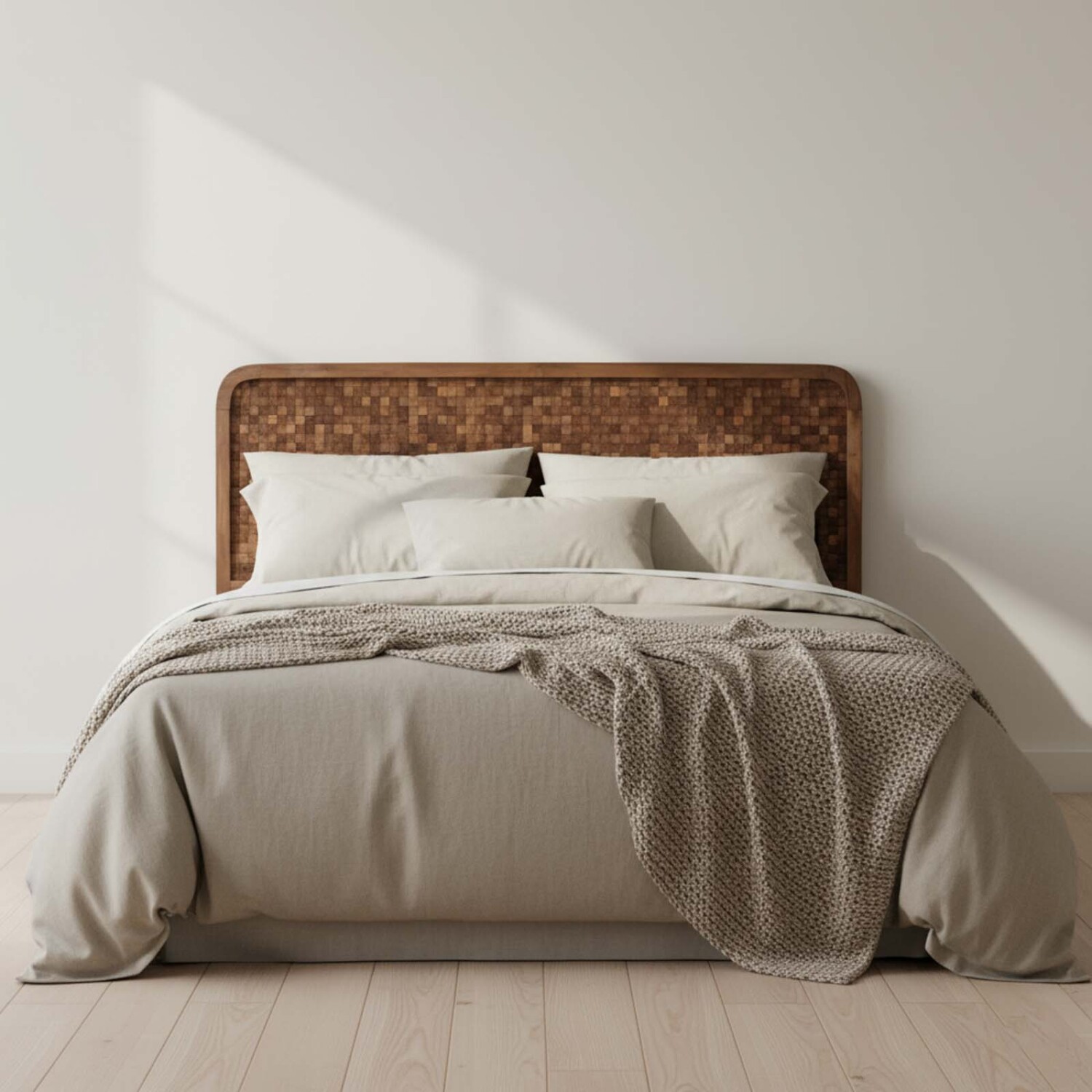 El Respaldo Super King Madera Marrón Kendari Castaño se presenta como una cabecera de diseño sofisticado, fabricada en madera maciza en color castaño, con medidas de 205 cm de largo y 143 cm de alto. Su estructura sólida y sus finos mosaicos de coco elaborados a mano crean un juego visual elegante, donde cada pieza refleja un trabajo artesanal único. Este respaldo para cama tamaño Super King aporta presencia y comodidad, ofreciendo un apoyo amplio y estable que realza el estilo del dormitorio. Descubra también la Mesa de Luz Kendari para completar el conjunto y transforme su espacio en un ambiente distinguido que invita a elegirlo.