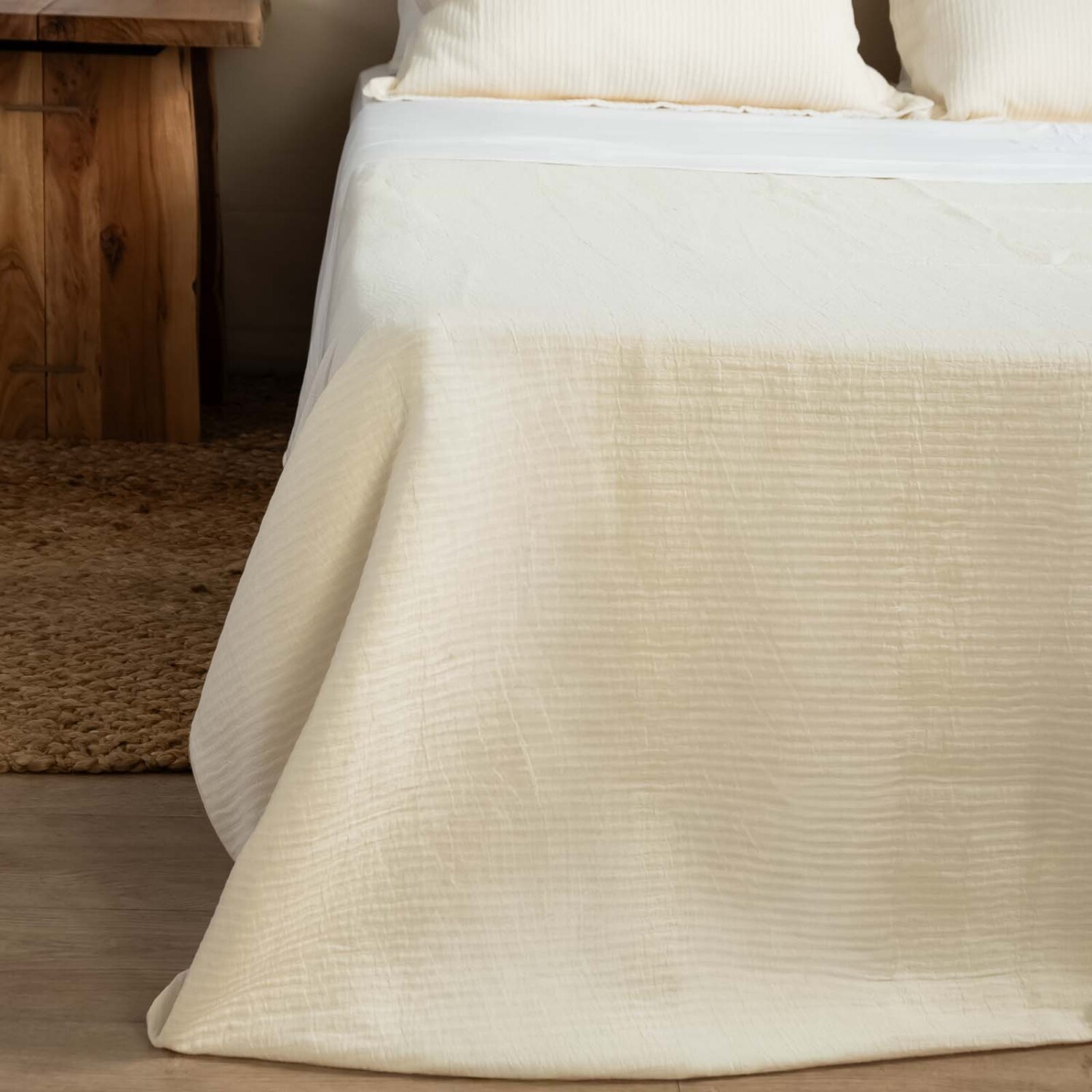Cubrecama en algodón. Incluye funda de almohada.