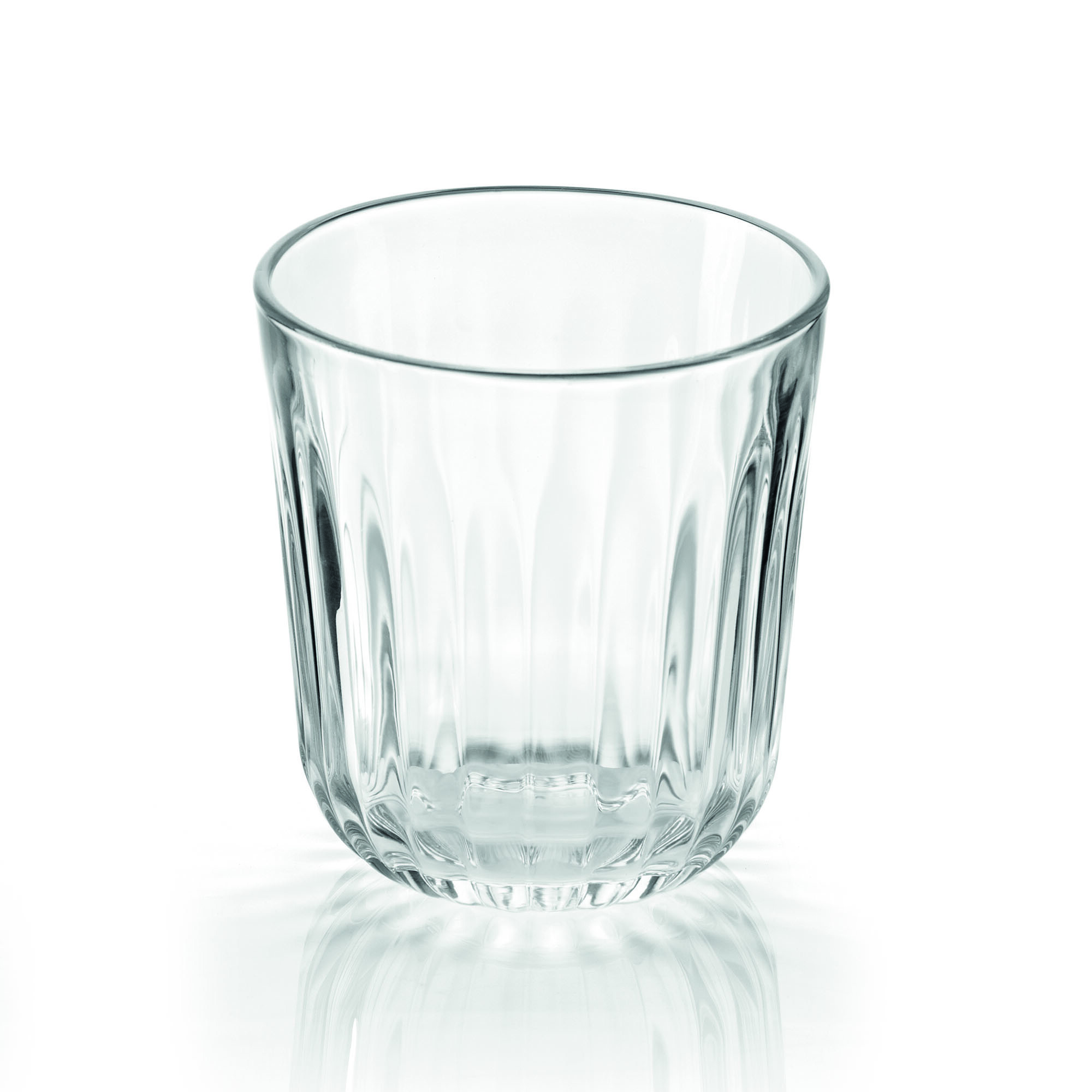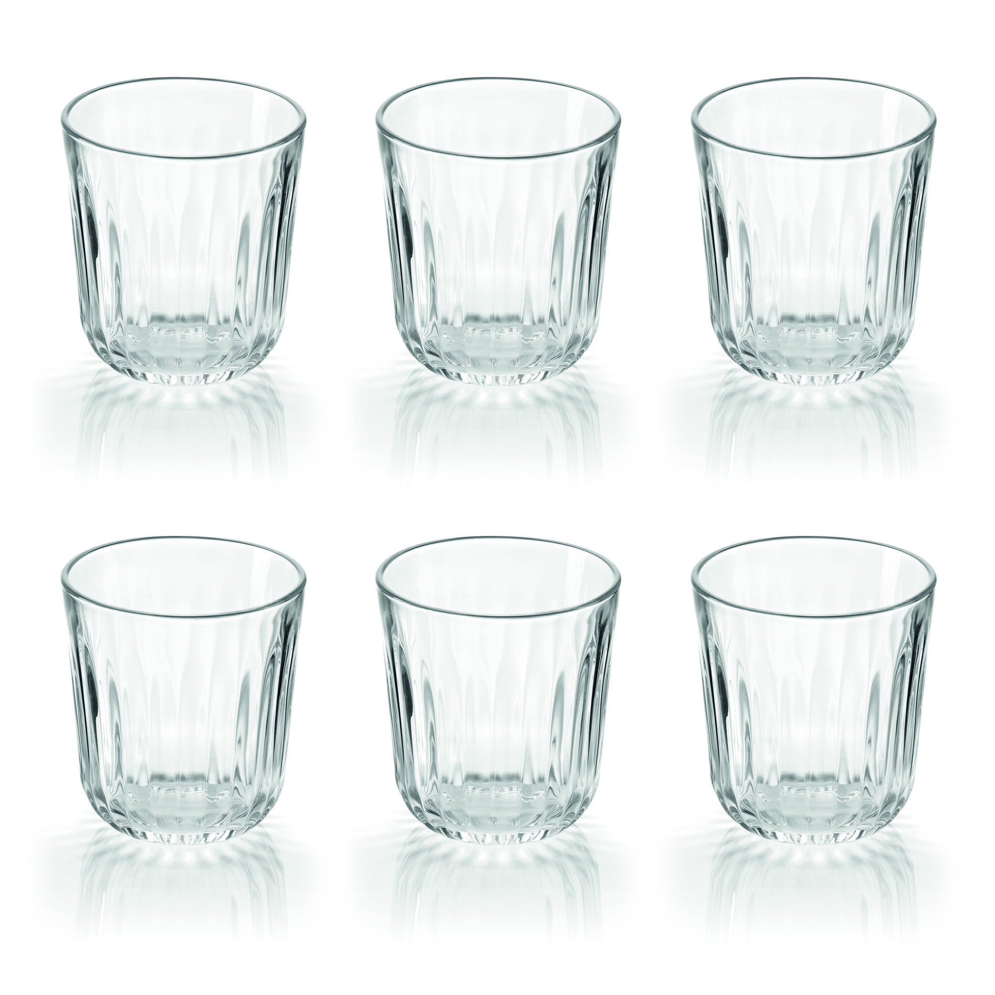 "Vasos hechos con vidrio moldeado muy resistente.. El tamaño de este vaso lo hace igualmente ideal para agua, cócteles o batidos, un elemento versátil para usar en la mesa o cuando se relaja. Capacidad 300ml. Apto para lavavajillas."