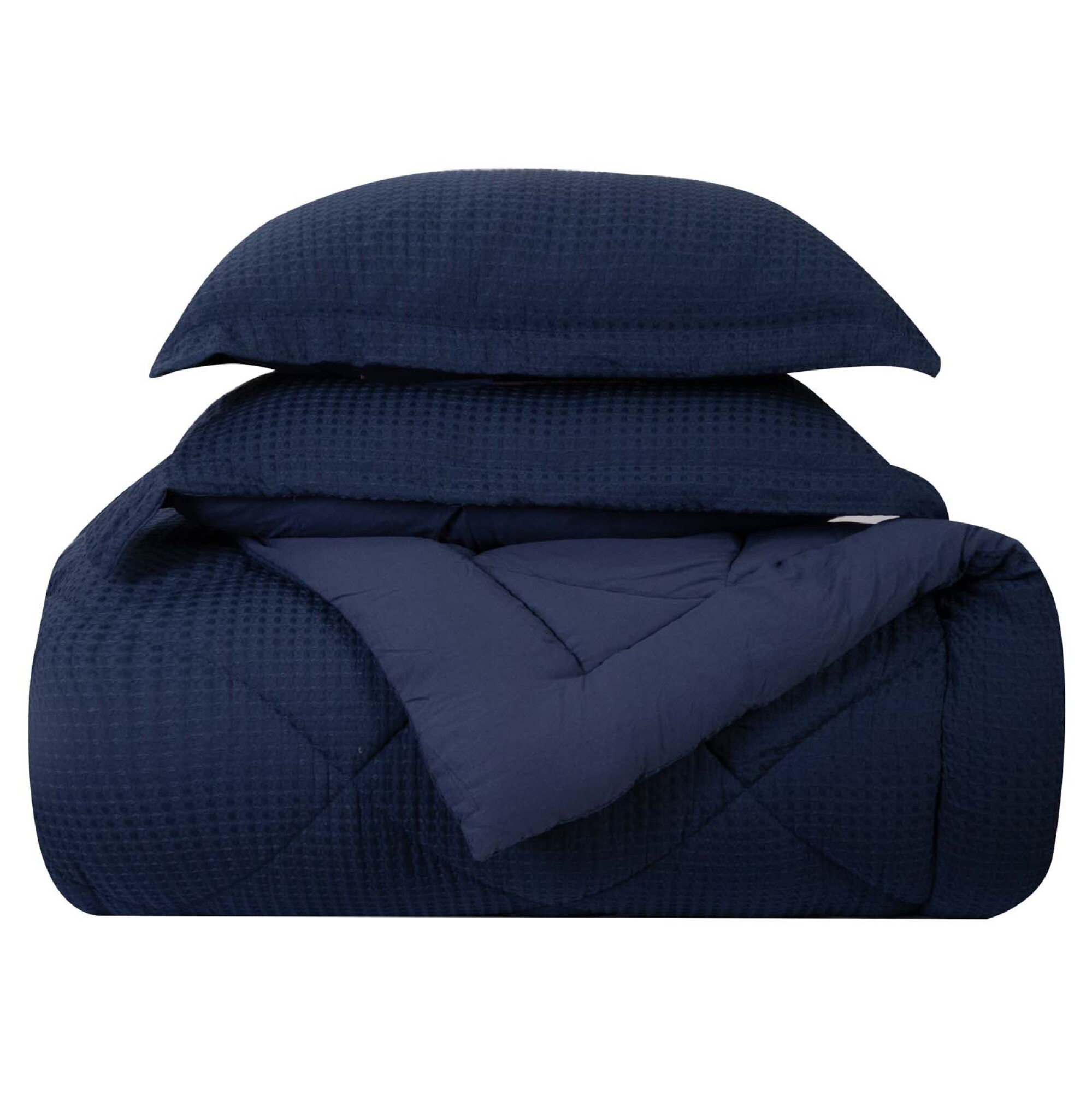 SET DE ACOLCHADO - 1 PLAZA POLIESTER AZUL GOFRE MARINO
