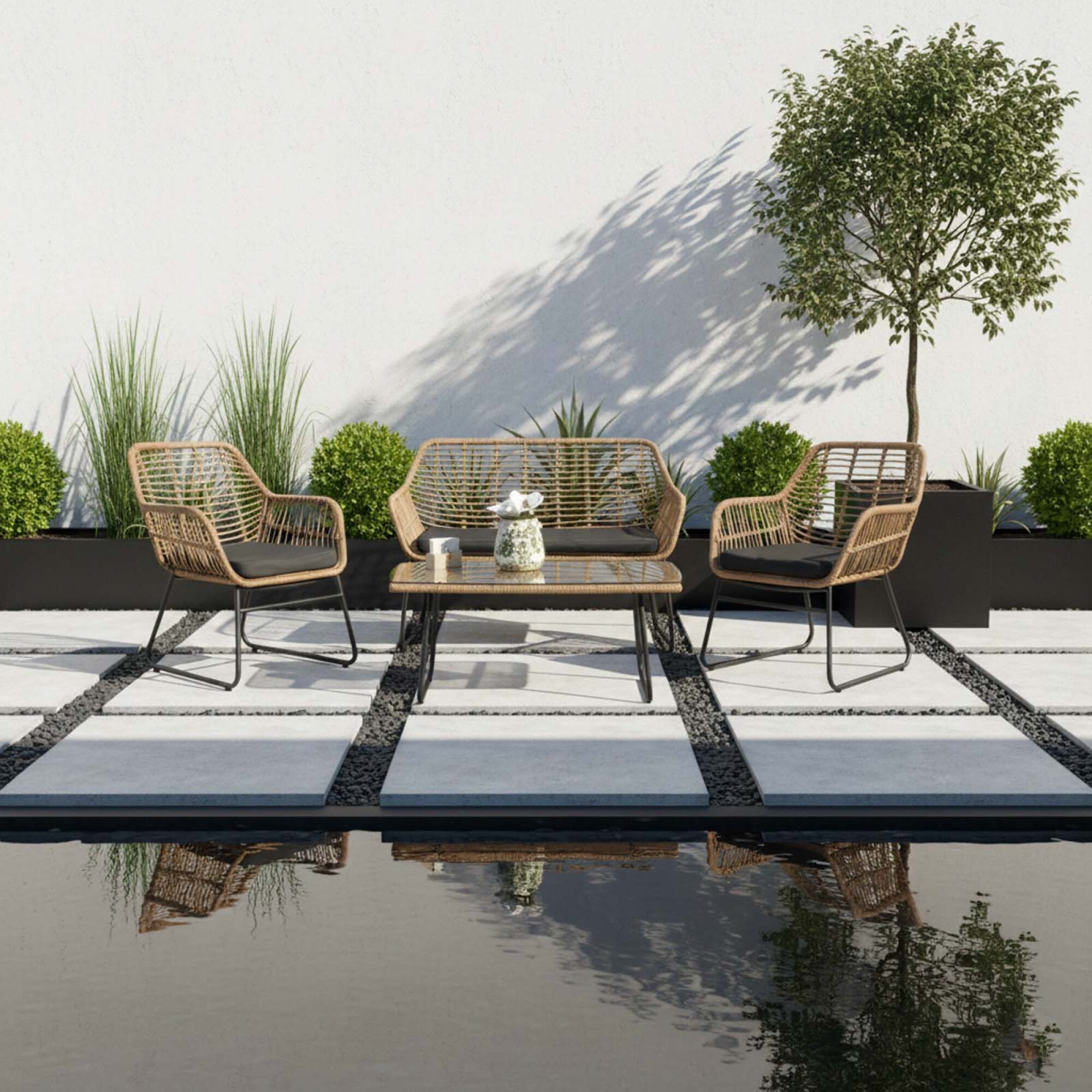 SET - LIVING NATURAL/BEIGE RATTÁN SINTÉTICO Y ACERO MADERO