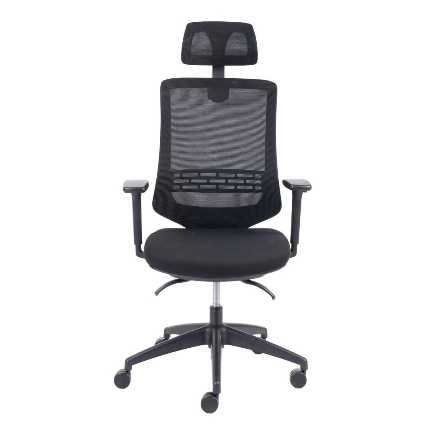 Silla de oficina gerencial con estructura en negro de polipropileno reforzado con fibra de vidrio, revestida en textilina negra. Asiento con tablero de madera de 1,4cm revestido en espuma cortada de densidad 30 y tela. Reposabrazos en polipropileno forrados en PU con movimiento 3D. Ruedas de nylon 60R. Base de nylon de 345mm. Elevador de gas clase 3 negro de 100mm. Soporte lumbar de polipropileno. Reposacabezas ajustable. Mecanismo autoajustable, 4 posiciones de bloqueo. Medida: 65 *65*113/123cm. Altura del asiento: 45/55cm. Tamaño del asiento: 45* 47cm. Tamaño de la espalda: 47*68cm.