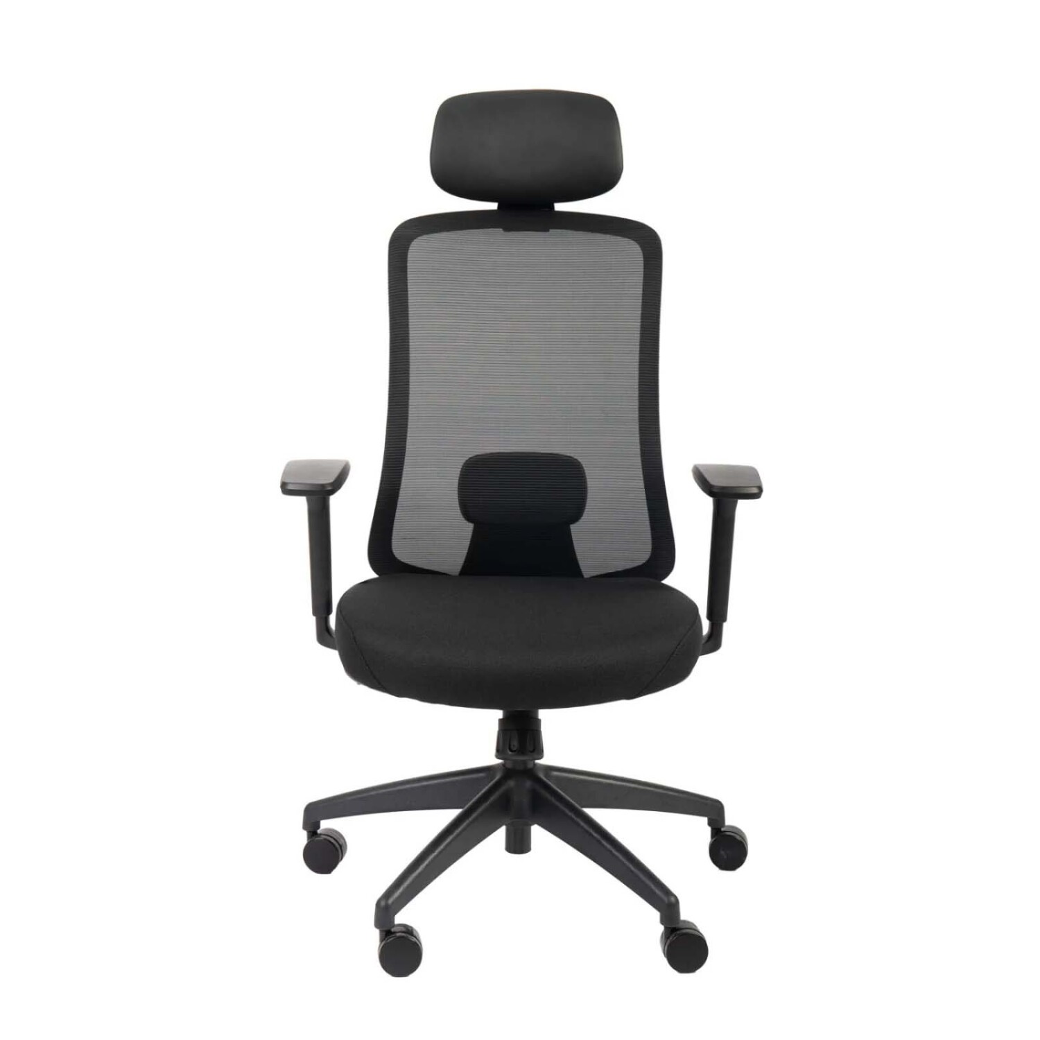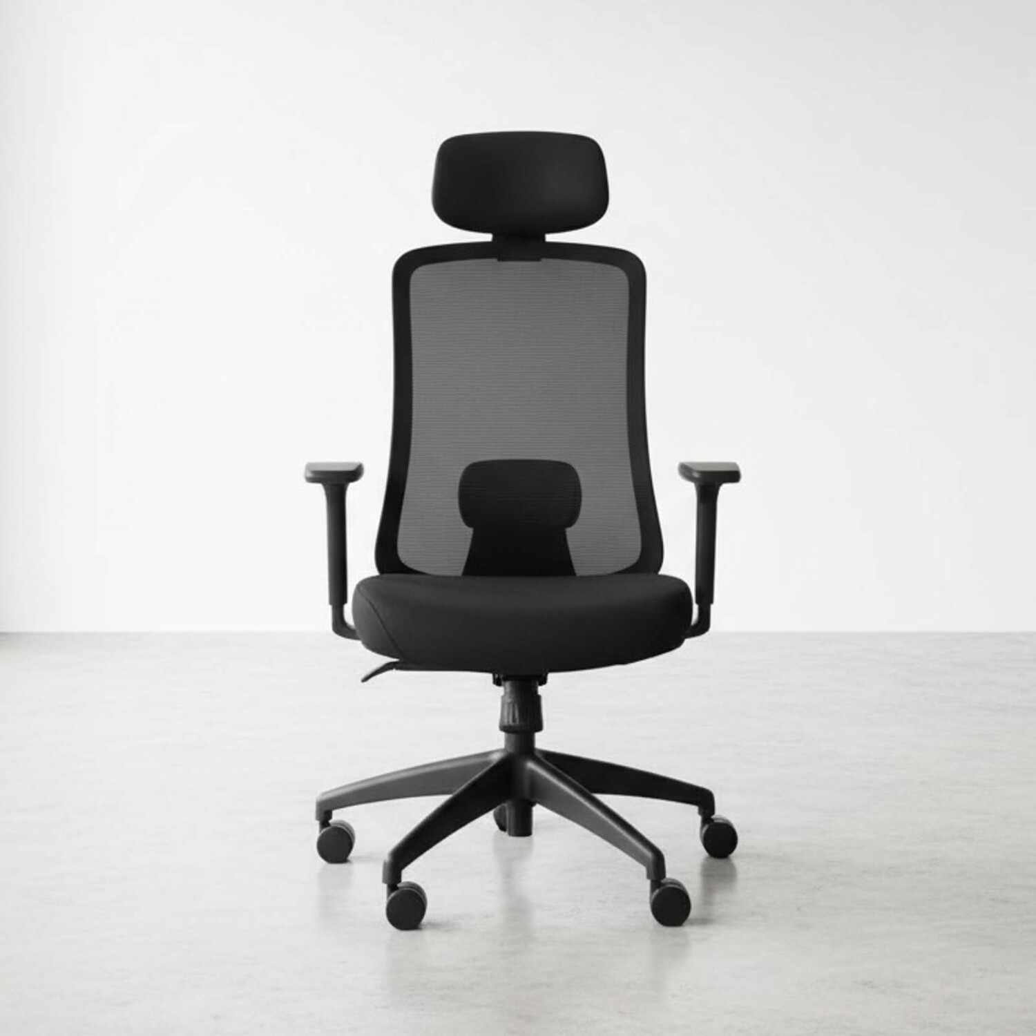 Silla de oficina gerencial con estructura en gris claro de poliamida reforzado con fibra de vidrio, revestida en textilina gris. Asiento con tablero de madera de 1,4cm revestido en espuma cortada de densidad 50 y tela. Reposabrazos en polipropileno forrados en PU con movimiento 3D. Ruedas de nylon 60R. Base de nylon de 345mm. Elevador de gas clase 3 SHS de 100mm. Soporte lumbar ajustable metalico revestido en PU. Reposacabezas ajustable. Mecanismo mariposa de inclinación, 3 posiciones de bloqueo. Medida: 63,5*68*100/109cm. Altura del asiento: 44/53cm. Tamaño del asiento: 54*54cm. Tamaño de la espalda: 67*48,5cm.