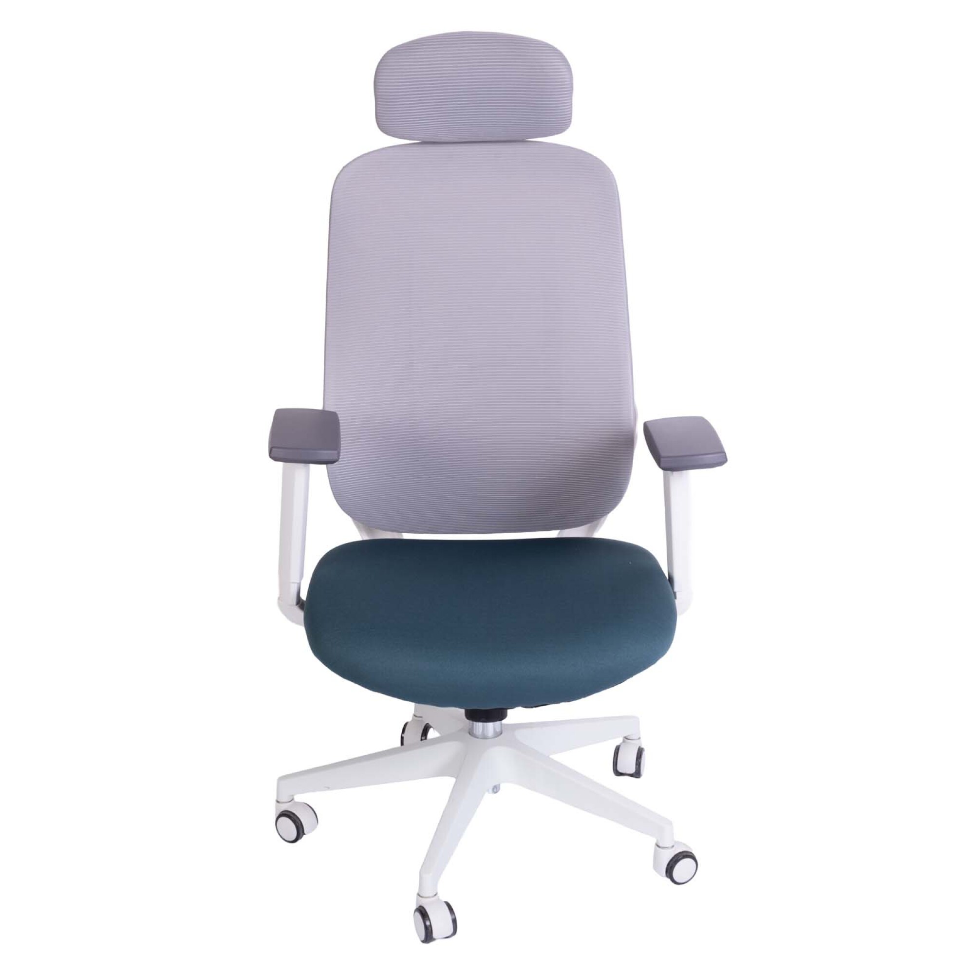 Silla de oficina giratoria con apoyacabeza y apoyabrazos. Fabricado en malla y polipropileno, incorpora base con ruedas que brinda movilidad y comodidad.