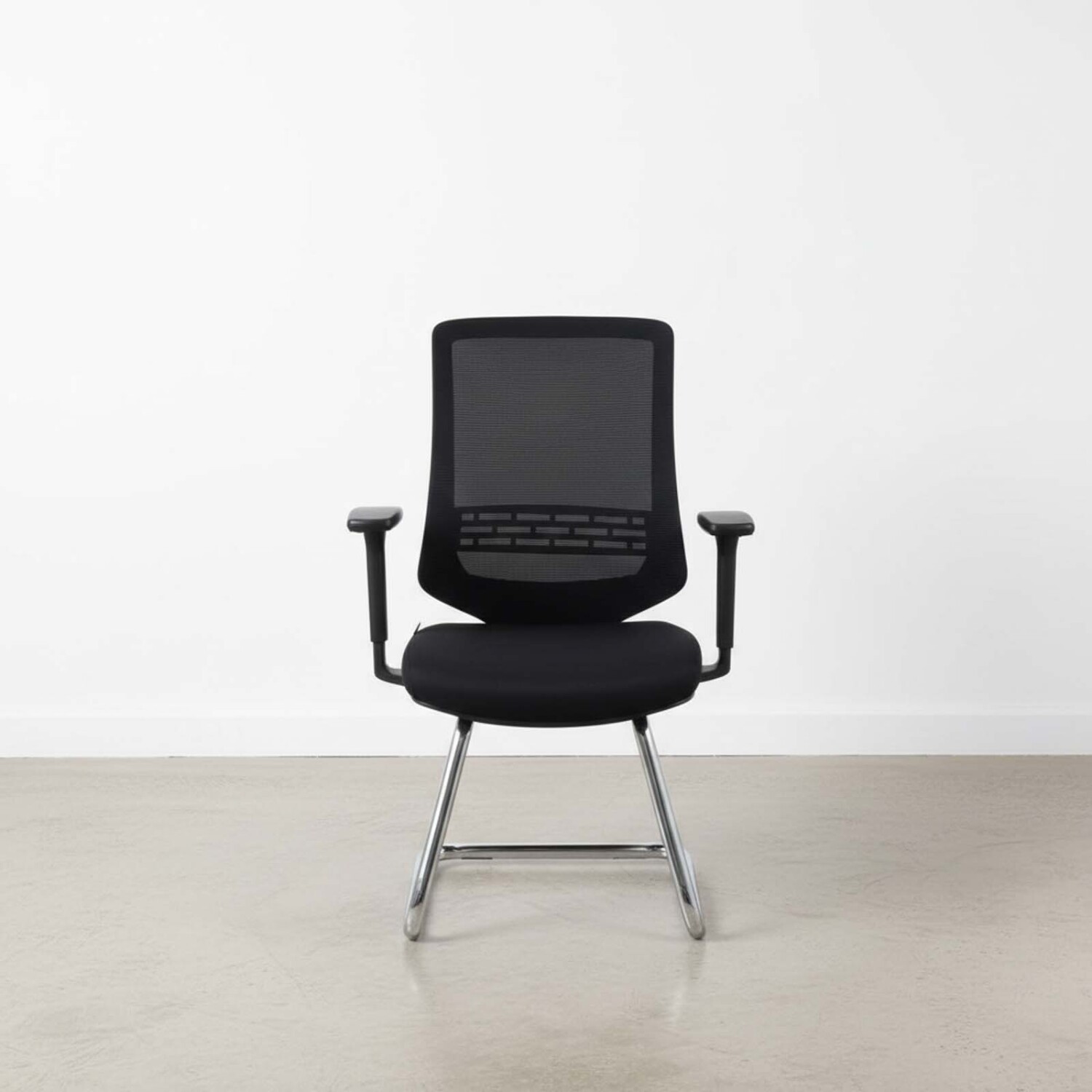 Silla de visita con estructura en negro de polipropileno reforzado con fibra de vidrio, revestida en textilina negra. Asiento con tablero de madera de 1,4cm revestido en espuma cortada de densidad 30 y tela. Reposabrazos en polipropileno forrados en PU con movimiento 3D. Base cromada de 1,7mm. Soporte lumbar de polipropileno.Medida: 63,5*65* 99/109cm. Altura del asiento: 45/55cm. Tamaño del asiento: 45*47cm. Tamaño de la espalda: 47*54cm.