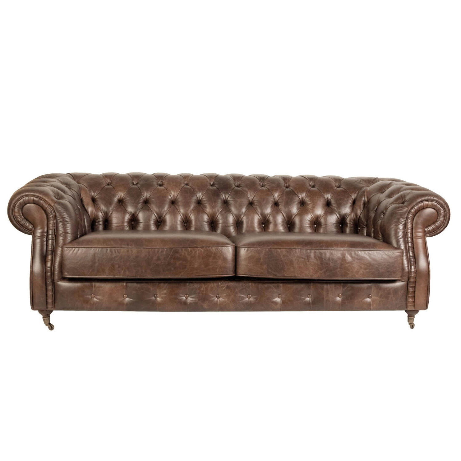 Sofá confeccionado en 100% cuero natural tratado con anilina, con tapizado chesterfield. Patas hechas en madera y con ruedas delanteras. Estructura hecha en madera, con espuma densidad 26 soft de alta resistencia, cintas elásticas y resortes espirales. MANTENIMIENTO: - No exponer a luz solar directa ni a fuentes de calor - No utilizar productos a base de solventes o cualquier otro producto abrasivo - La utilización de productos de limpieza inadecuados puede resecar el cuero y causar daños irreparables. LIMPIEZA: - Líquidos deben ser removidos inmediatamente con un paño seco - Limpieza regular debe ser efectuada con un paño seco limpio - Para suciedades más severas utilizar un paño limpio humedecido en agua y jabón neutro.