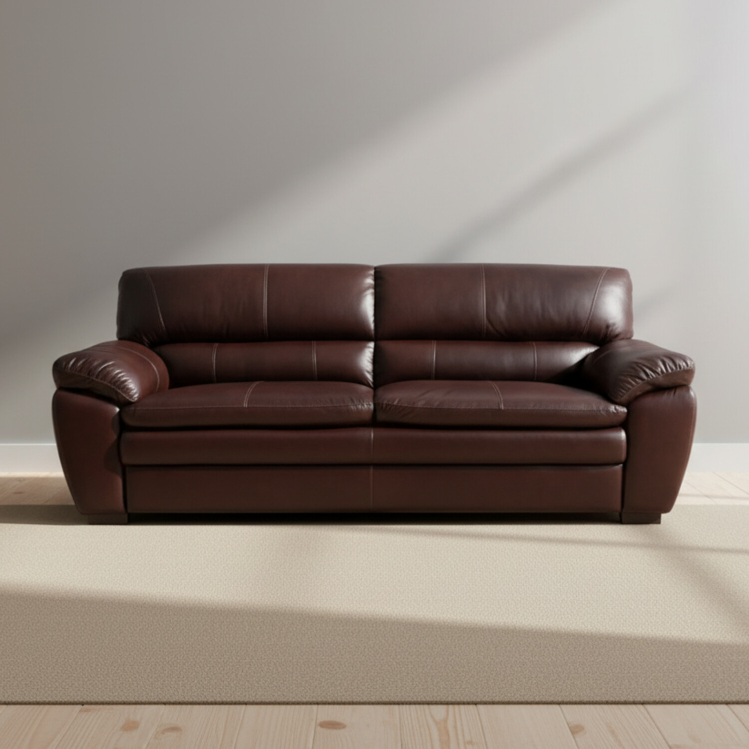 SOFÁ - 3 CUERPOS CUERO-100-NATURAL MARRON NEW FOCUS COGNAC