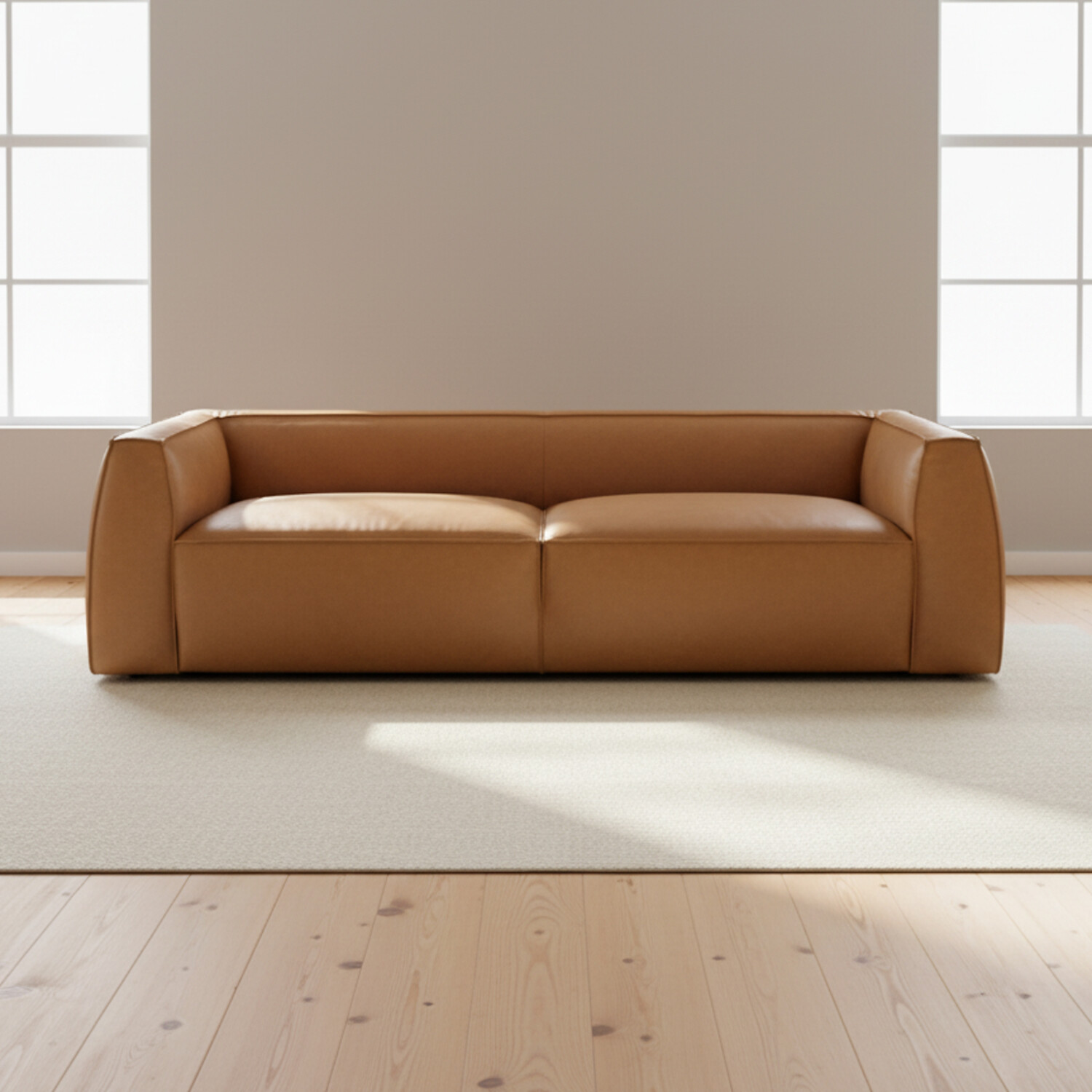 SOFÁ - 3 CUERPOS CUERO MARRON TUFA CAMEL