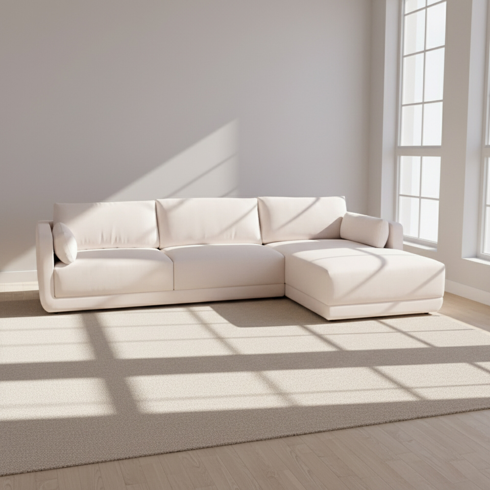 SOFÁ C/CHAISE - MÁS DE 4 CUERPOS TELA NATURAL-BEIGE POLY BEIGE