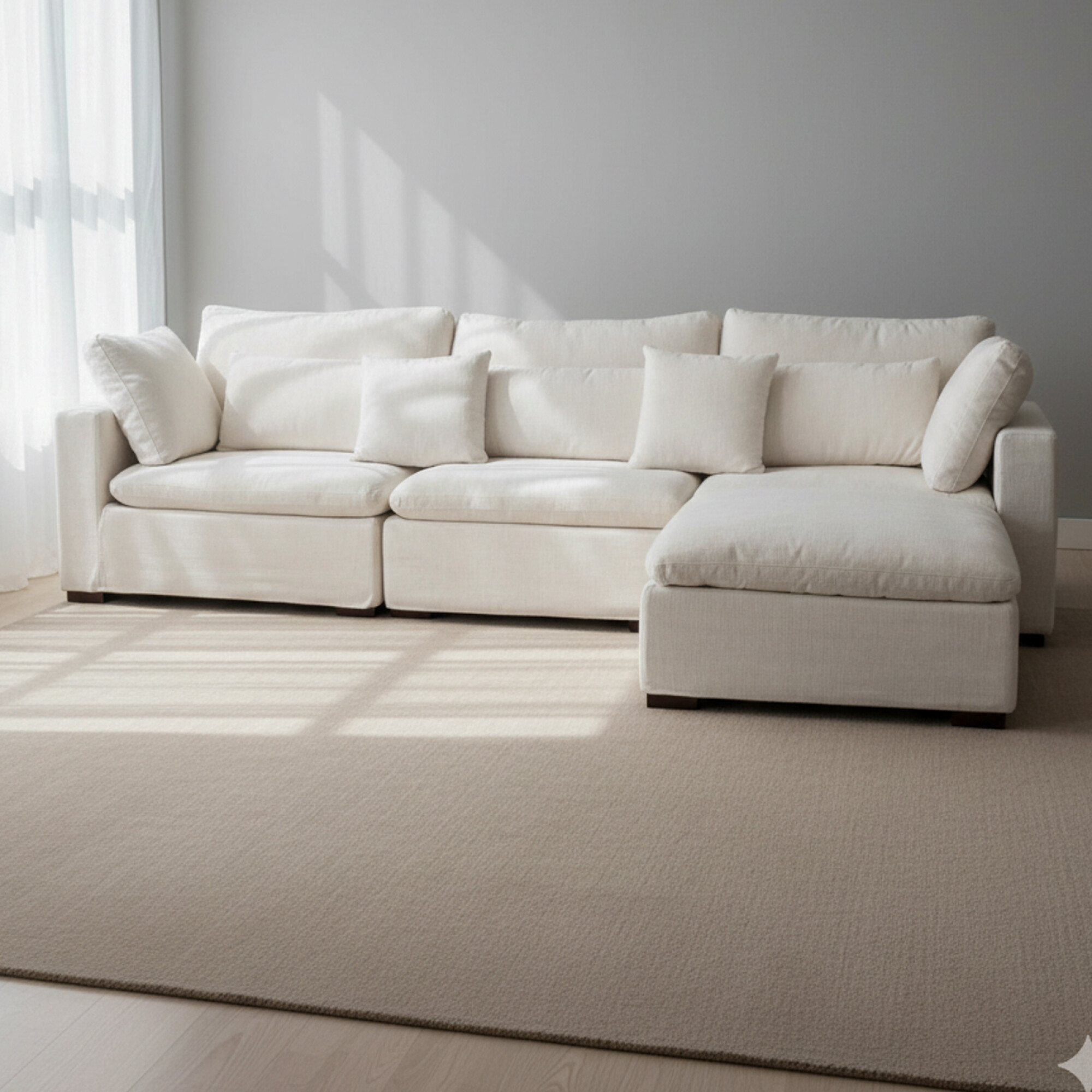 SOFÁ C/CHAISE Y FUNDAS DESMONTABLES - 4 CUERPOS TELA NATURAL-BEIGE MOMA NATURAL