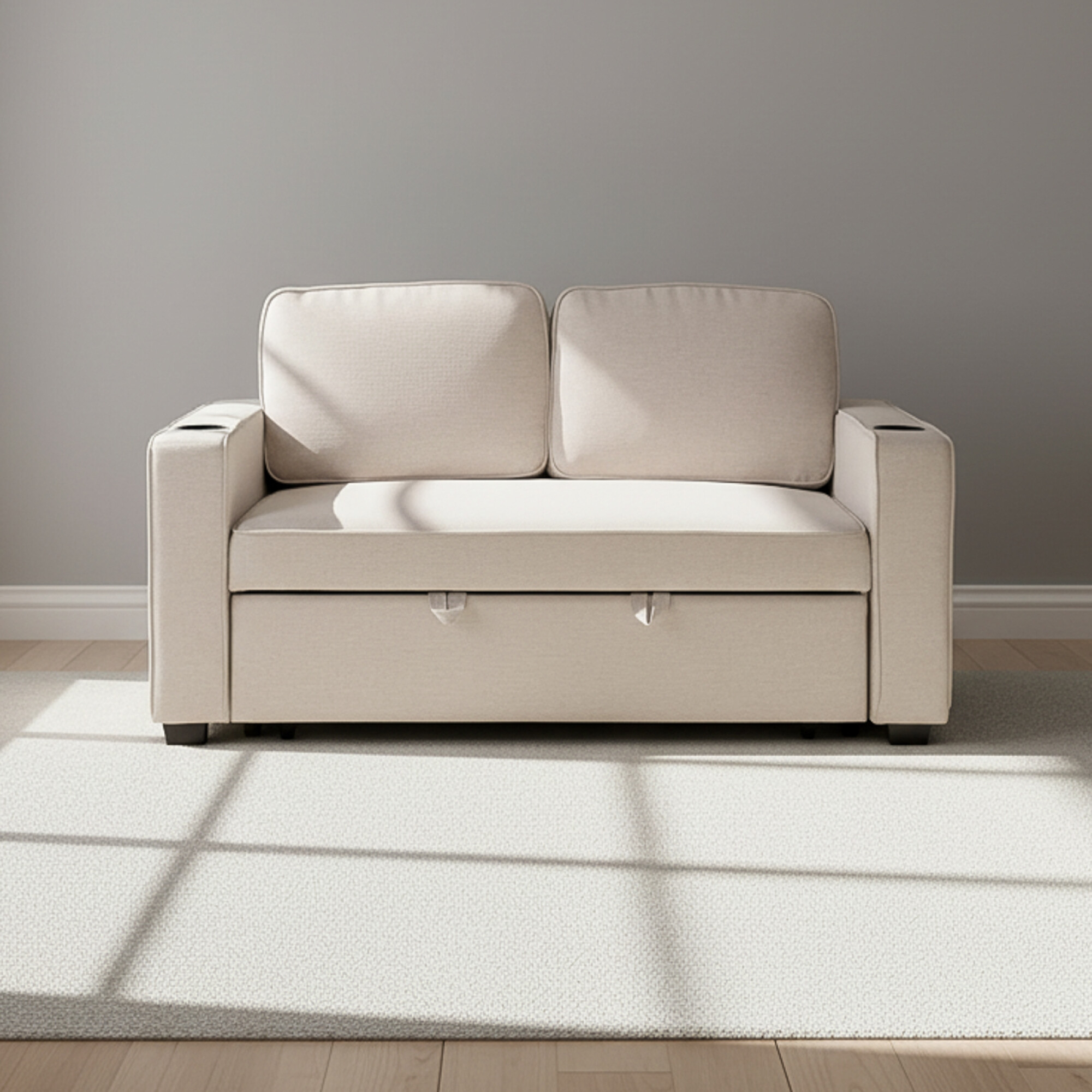 SOFÁ CAMA - 2 CUERPOS TELA NATURAL-BEIGE MILEY BEIGE