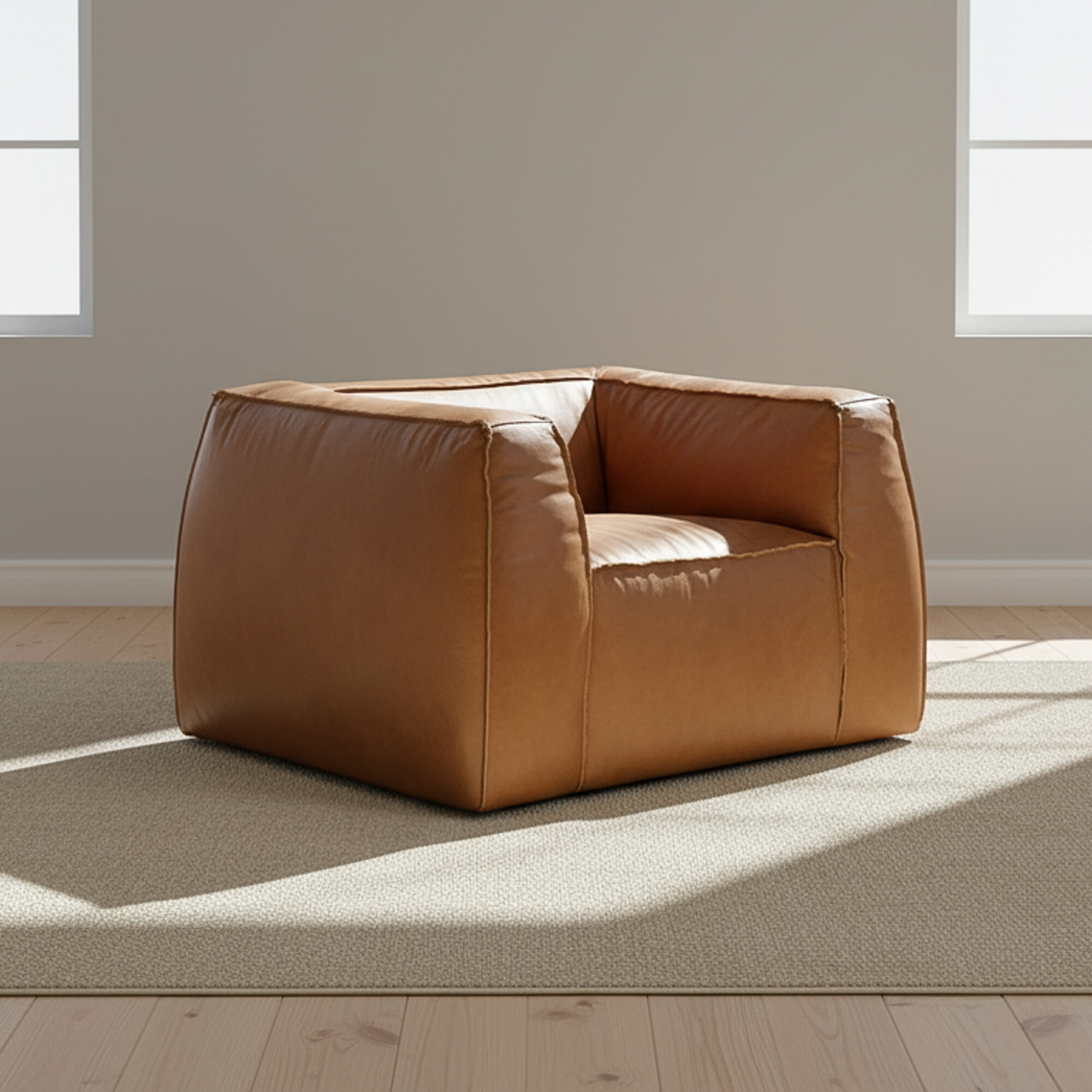 SOFÁ - CUERO MARRON TUFA CAMEL