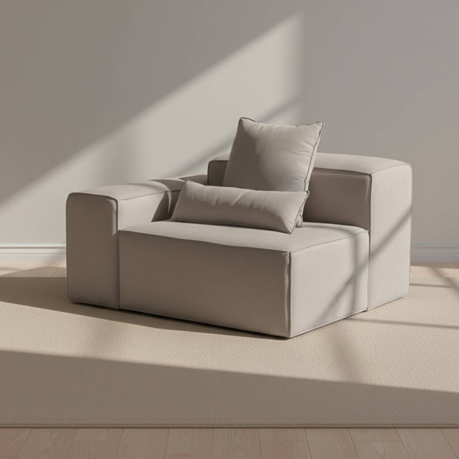 SOFÁ KAI - 1 CUERPO TELA GRIS MODULAR CON BRAZO IZQUIERDO