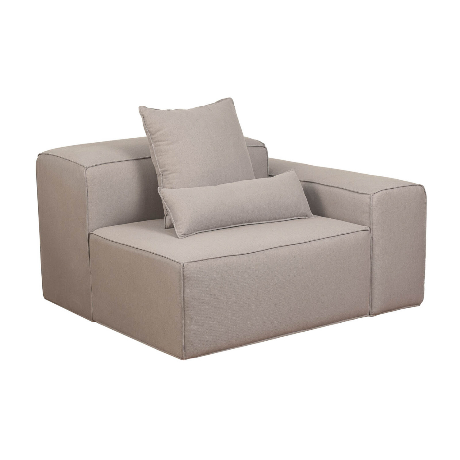Sofá modular con brazal, confeccionado en tela premium. Estrucutra hecha en madera y relleno de espuma de alta densidad