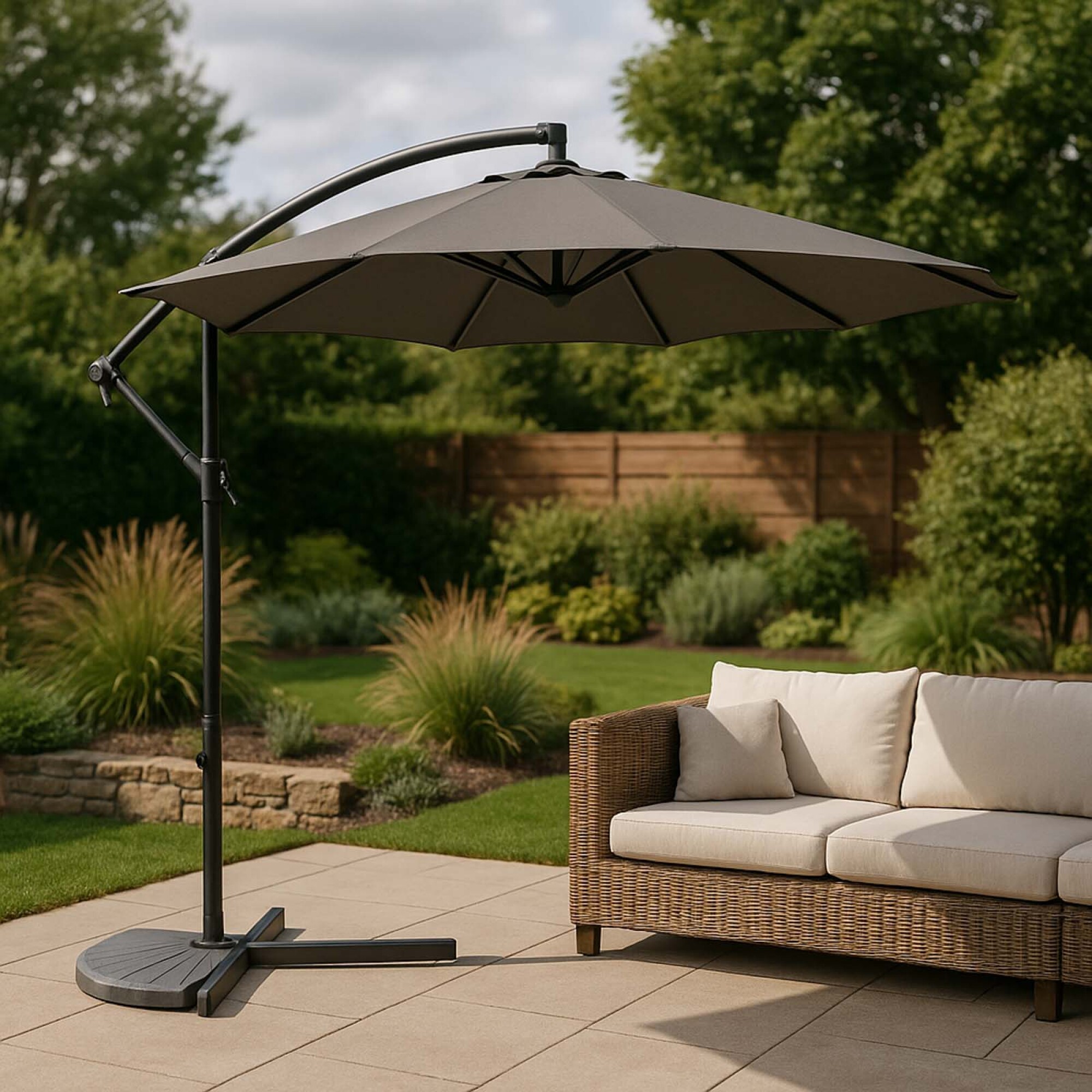 Sombrilla OSLO fabricada con una combinación de aluminio y hierro, lo que garantiza su estabilidad y resistencia. La tela utilizada Poliester 180gr, permite disfrutar de la sombra y mantener una temperatura fresca en los días calurosos. Ya sea en tu jardín o terraza, la sombrilla OSLO es una gran elección para crear un ambiente acogedor y protegido bajo el sol. Color Gris. Contrapeso de la sombrilla no incluido.