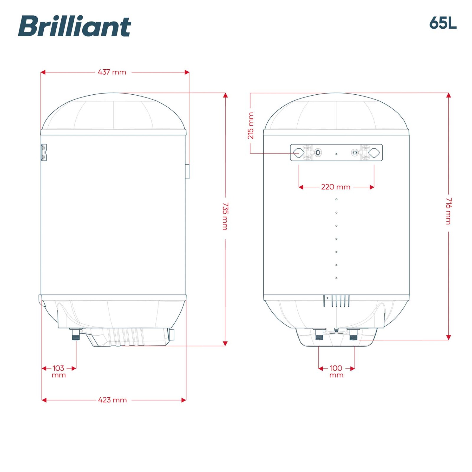 TERMOTANQUE BRILLIANT - ACERO 65 LITROS BREV65WH