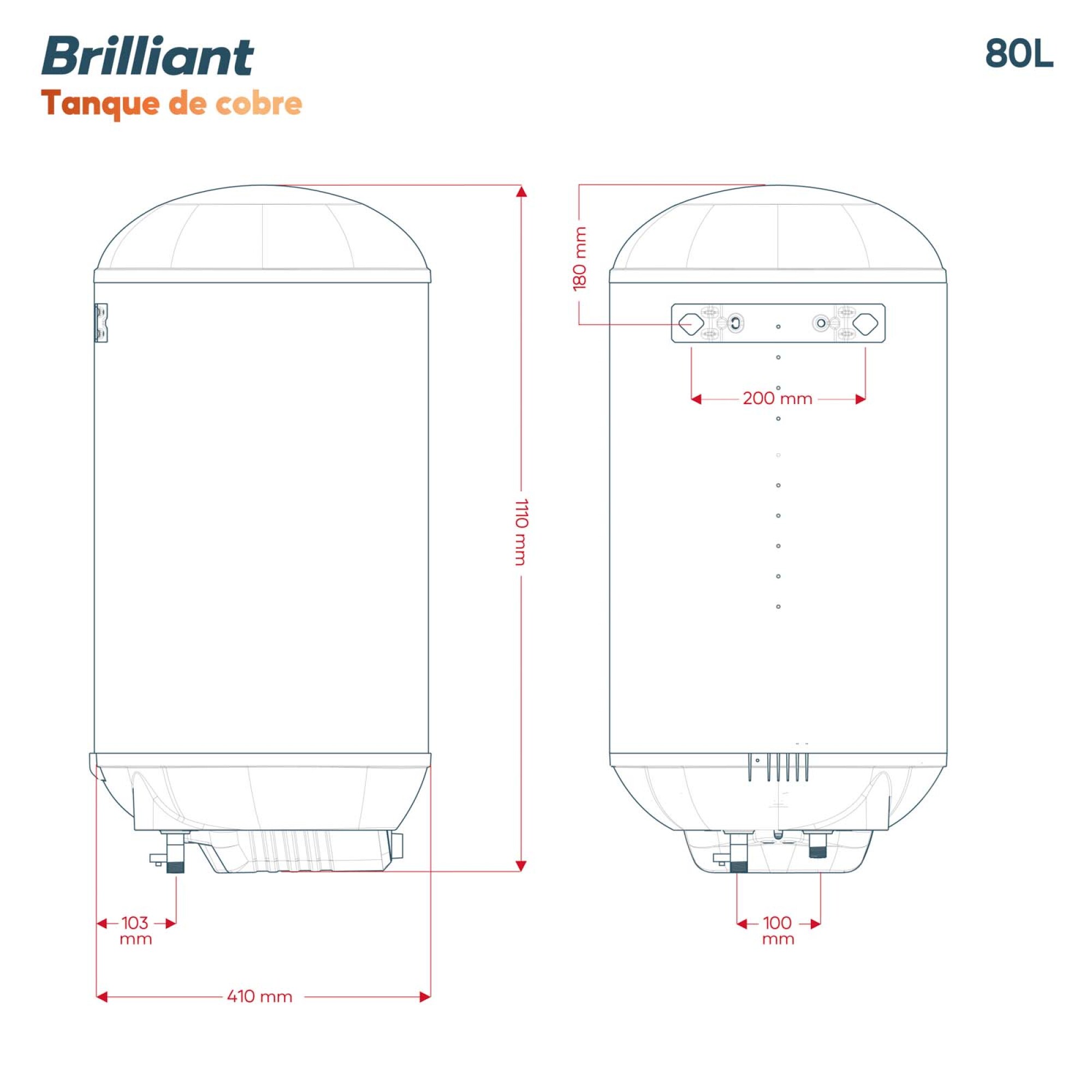 TERMOTANQUE BRILLIANT - COBRE 80L BRCC80WH